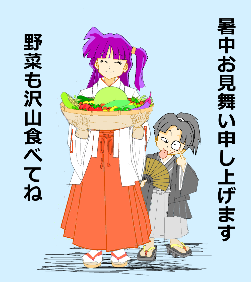 今回は過去の落書きから修正して暑中見舞いのイラストにして完成させましたが