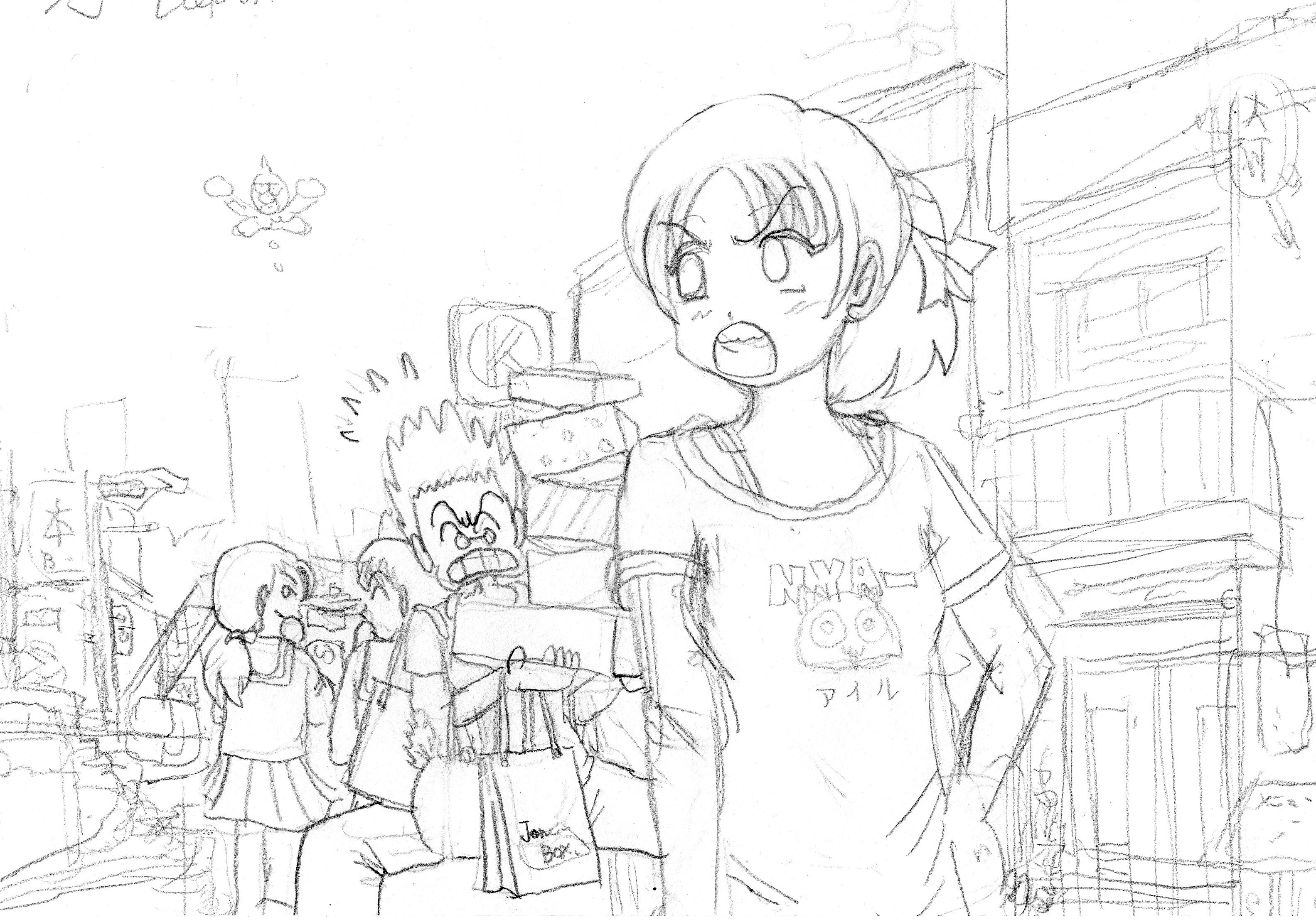 きもできず下描きは鉛筆で描いて兄貴にスキャンして貰いました。