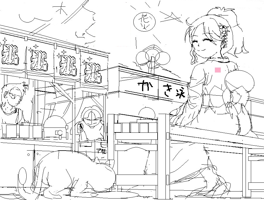 仮に屋台が消えてなくても下描きと全然違うのは僕のいつもの事かもしれませんが…